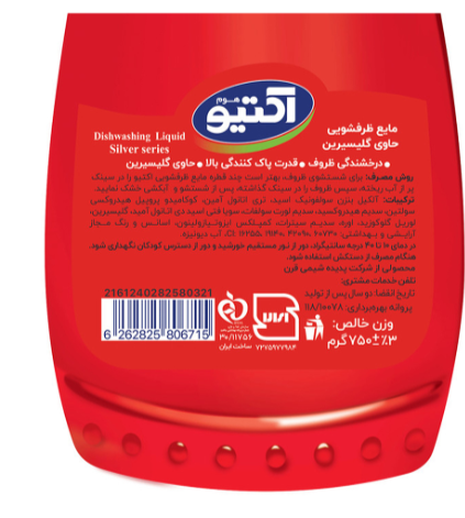 مایع ظرفشویی حاوی گلیسیرین اکتیو سازگار با پوست دست، علاوه بر شستن سریع چربیها، به سرعت از روی ظروف شسته میشود و بدین طریق علاوه بر صرفهجویی در مصرف آب، بوی نامطبوع روی ظروف باقی نمیگذارد. مایع ظرفشویی سیلور اکتیو دارای خاصیت پاککنندگی قوی و مؤثر بوده و باعث درخشش ظروف میگردد. این محصول با تنوع بالا در سه رنگ و رایحه مناسب با سلیقه مصرفکنندگان طراحی و عرضه شده است.